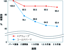 | ◆ 持続力に差 毛髪を自然に近い状態でしっかりとクセづけ固定するため、いわゆる“パーマの持ち”が格段に向上。ゆるやかなウェーブも、いままでと比較し約1.5倍、 およそ3ヶ月近く長持ちするという調査結果(*)も出ています。パーマがかかりにくい方、とれやすい方にこそ、おすすめしたいウェーブです。 (*)エステシモ チオ(エステシモ フォーミュラN)を使用し、通常プロセス(=コールドパーマ)と1剤水洗後air waveにより毛髪の温度と水分をコントロールしたプロセス(=エアウェーブ)との比較。 |